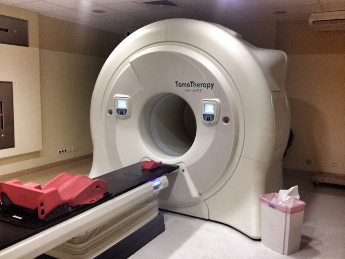 Wielkopolskie Centrum Onkologii (WCO) w grudniu 2008 roku stało się posiadaczem pierwszego w Polsce akceleratora tomoterapeutycznego HT (Helical Tomotherapy). W  2011 roku podobny akcelerator zainstalowany został w Centrum Onkologii w Gliwicach. Obecnie na świecie zainstalowanych jest ponad 500 aparatów tomoterapeutycznych różniących się między sobą funkcjonalnościami zależnymi od wersji. Są to odpowiednio: Tomo H, Tomo HD oraz Tomo HDA. Tomo H (Helical) jest wersją bazową umożliwiającą realizację napromieniania w trybie spiralnym z  wykorzystaniem stałej szerokości rozwarcia szczęk pierwotnych. Szerokość rozwarcia szczęk pierwotnych definiowana jest w osi długiej pacjenta. Tomo HD (Helical and Direct) umożliwia dodatkowo napromienianie kierunkowe, które polega na dostarczeniu dawki ze stałej pozycji źródła promieniowania ustawionego nieruchomo, pod określonym kątem względem ciała pacjenta. Wersja Tomo HDA (Helical, Direct and Adaptive) pozwala na optymalizację rozwarcia szczęk pierwotnych w trakcie dostarczania dawki terapeutycznej. HT zainstalowana w WCO odpowiada wersji Tomo H. Dlatego w pracy przedstawiono ogólną charakterystykę wersji bazowej aparatu tomoterapeutycznego oraz sposób realizacji napromieniania i przypadki kliniczne leczone przy użyciu trybu spiralnego