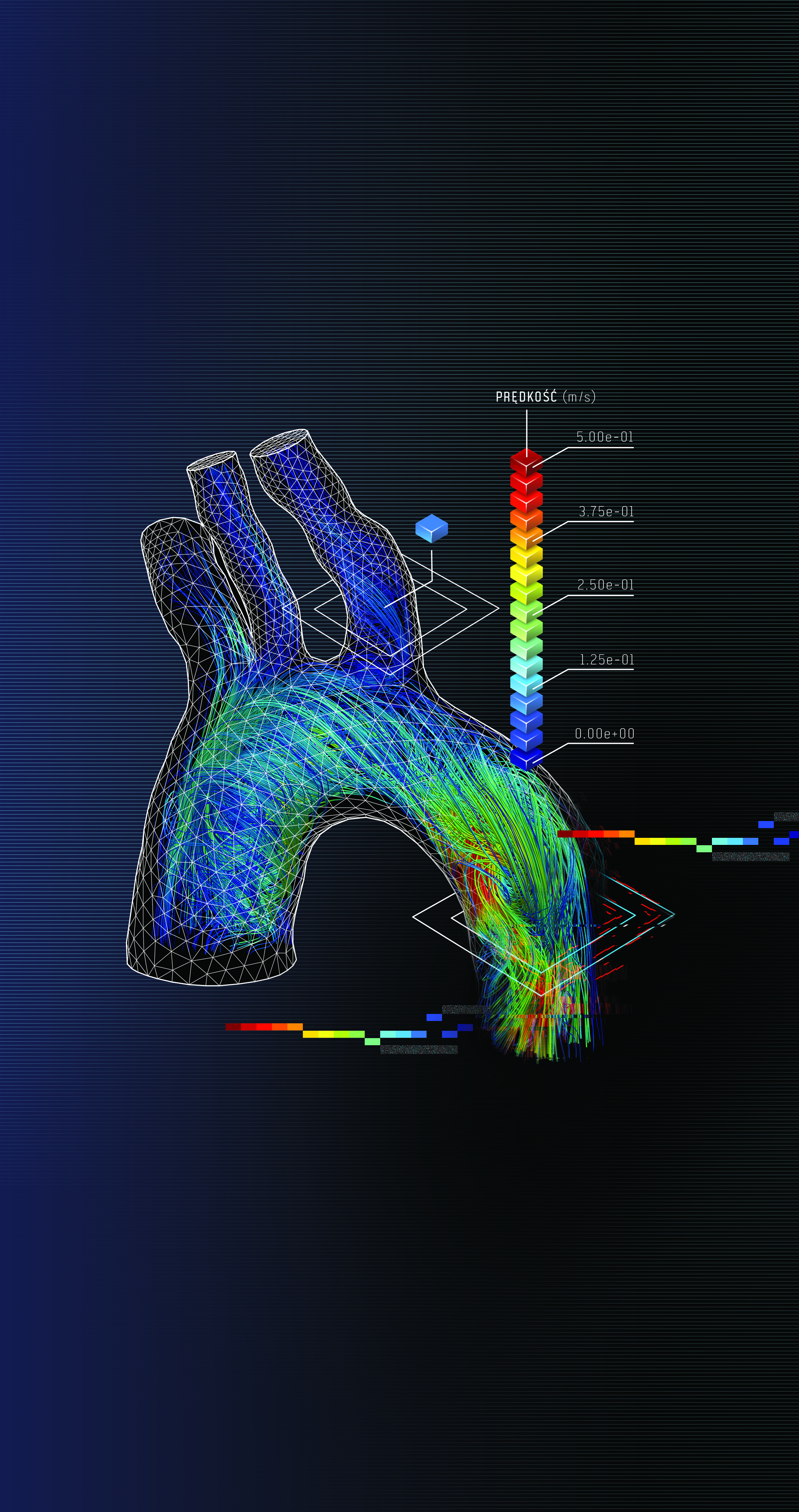 Rys. 2 Wizualizacja przepływu krwi w aorcie uzyskana na podstawie symulacji numerycznej