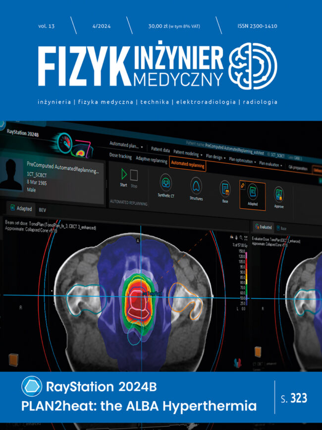 PEŁNE WYDANIE: https://sklep.inzynier-medyczny.pl/ spis treści Radioterapia adaptacyjna na jeden click dla każdego akceleratora? Tak! Tylko w RayStation 2024B! Model LQ w planowaniu radioterapii: możliwe pułapki 335 VERITON-CT Series Proces dopuszczenia modeli systemu planowania leczenia radioterapeutycznego do użytku klinicznego ExacTrac Dynamic – nowy wymiar pozycjonowania i monitorowania pacjenta Wykorzystanie odkształcalnego algorytmu w radioterapii powierzchniowej Weryfikacja…