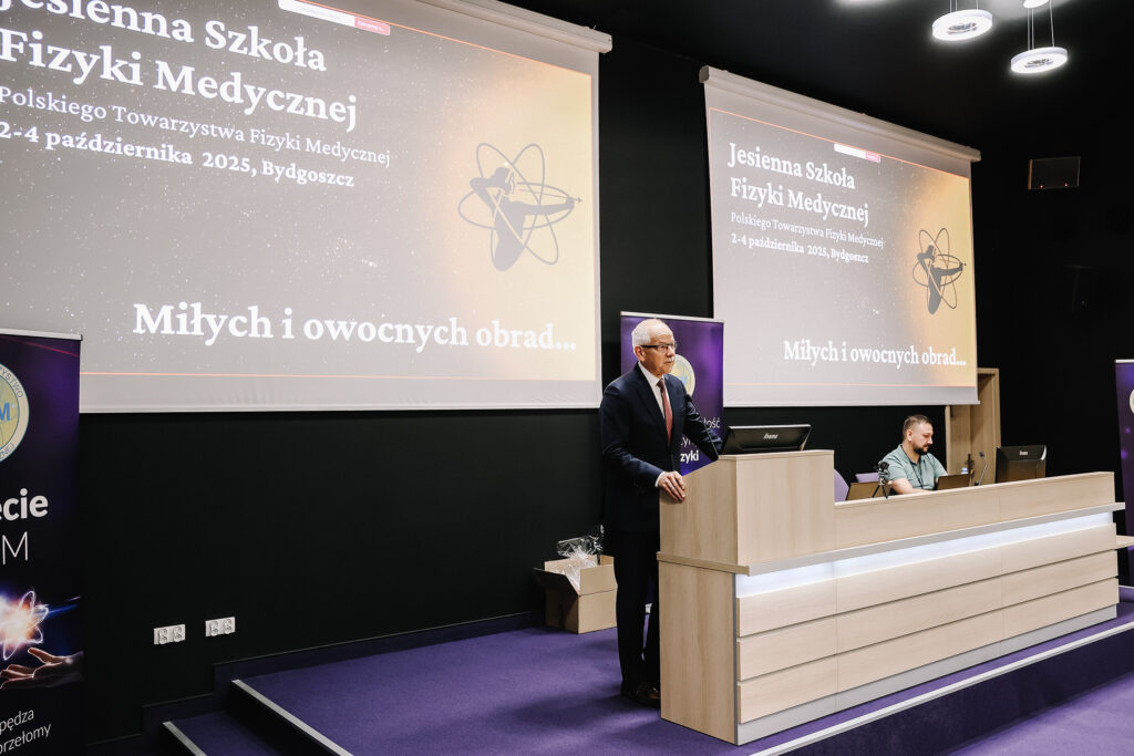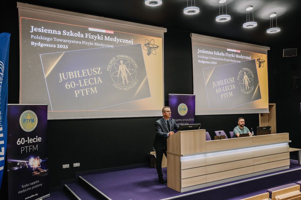 W dniach 2-4 października 2025 r. w Bydgoszczy odbyła się kolejna edycja Jesiennej Szkoły Fizyki Medycznej – wydarzenia, które na stałe wpisało się w kalendarz najważniejszych spotkań specjalistów z zakresu fizyki medycznej w Polsce. Tegoroczna odsłona zgromadziła ponad 240 uczestników z całego kraju reprezentujących środowiska naukowe, kliniczne i techniczne. Wśród obecnych znaleźli się zarówno doświadczeni eksperci, jak i młodzi adepci tej interdyscyplinarnej dziedziny.